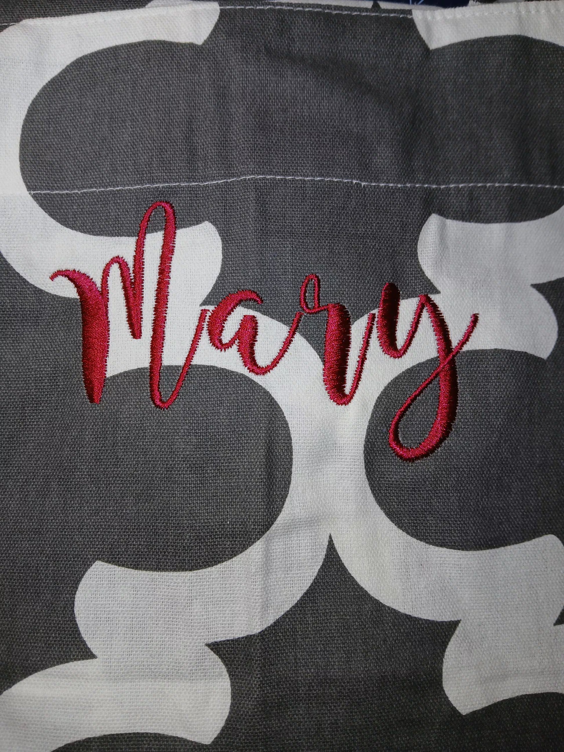 - Custom embroidery with your choice of text, names, or designs