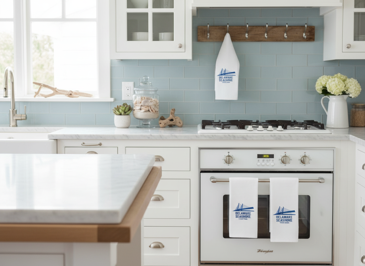 Bring the beauty of Delaware's iconic coastline into your kitchen with our premium embroidered waffle-weave kitchen towel featuring the Delaware Seashore State Park bridge design.
