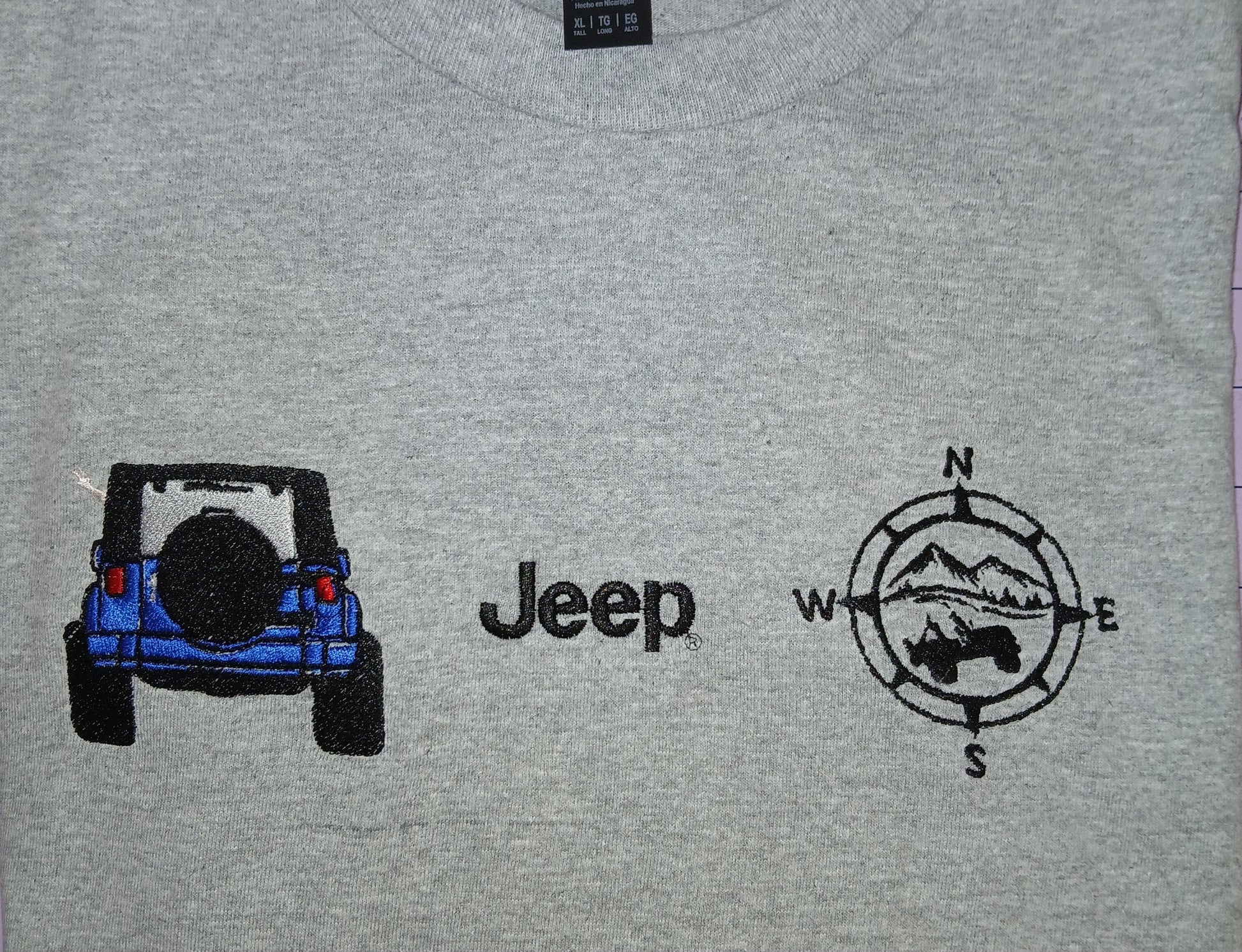 Show your love for adventure with this unique embroidered t-shirt featuring a playful duck, iconic Jeep vehicle, and compass design. Perfect for Jeep enthusiasts and outdoor lovers alike!