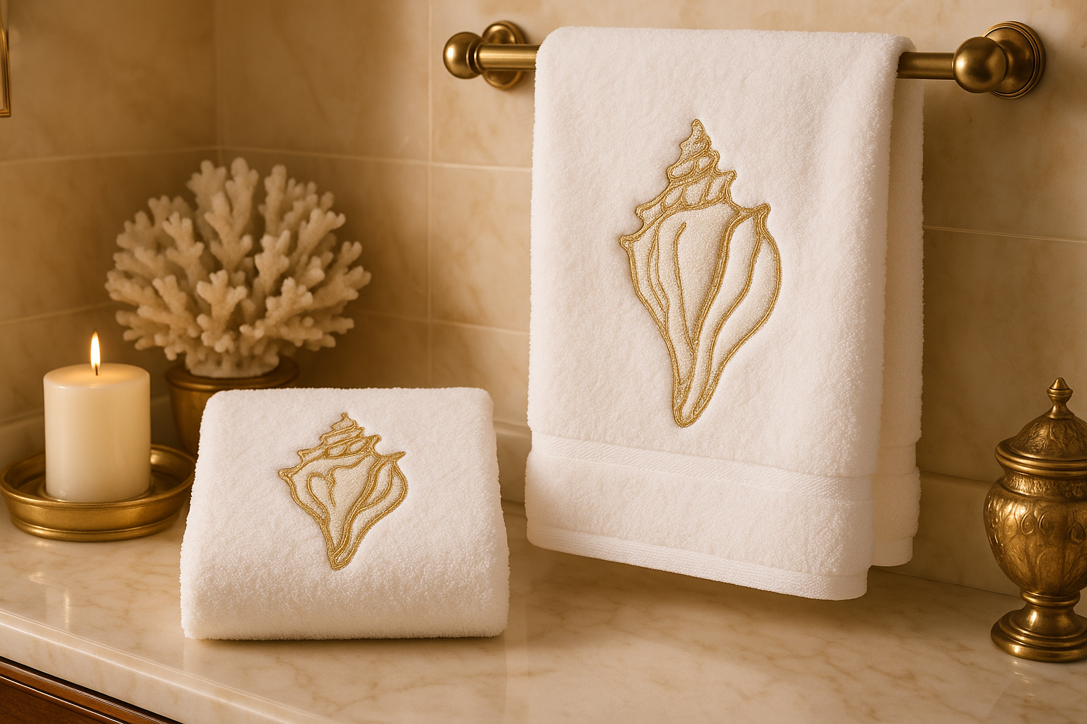 The conch shell has long been a symbol of the ocean's power and beauty. This elegant design brings that natural wonder into your daily routine, creating a serene, spa-like atmosphere in your bathroom. Whether you're decorating a beach house or simply love coastal style, this towel is the perfect blend of functionality and artistry.